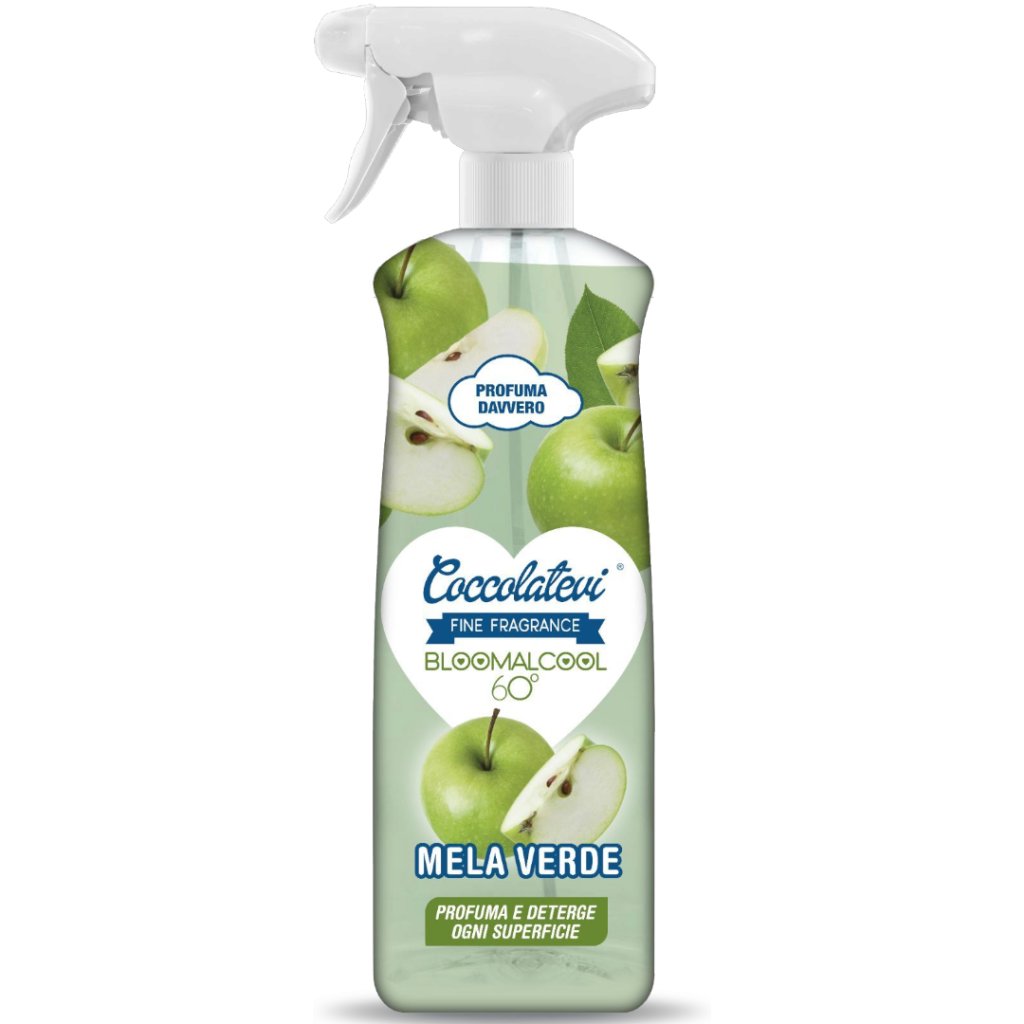 Bloomalcool Coccolatevi je supervoňavý 60° alkohol používaný v parfumérii a kozmetike, ktorý sa vyznačuje príjemnými tónmi zeleného jabĺčka. Vhodný na všetky druhy nečistôt, pomáha odstraňovať šmuhy, odtlačky prstov, choroboplodné zárodky a baktérie, je vhodný na akýkoľvek typ povrchu a rýchlo sa odparuje.