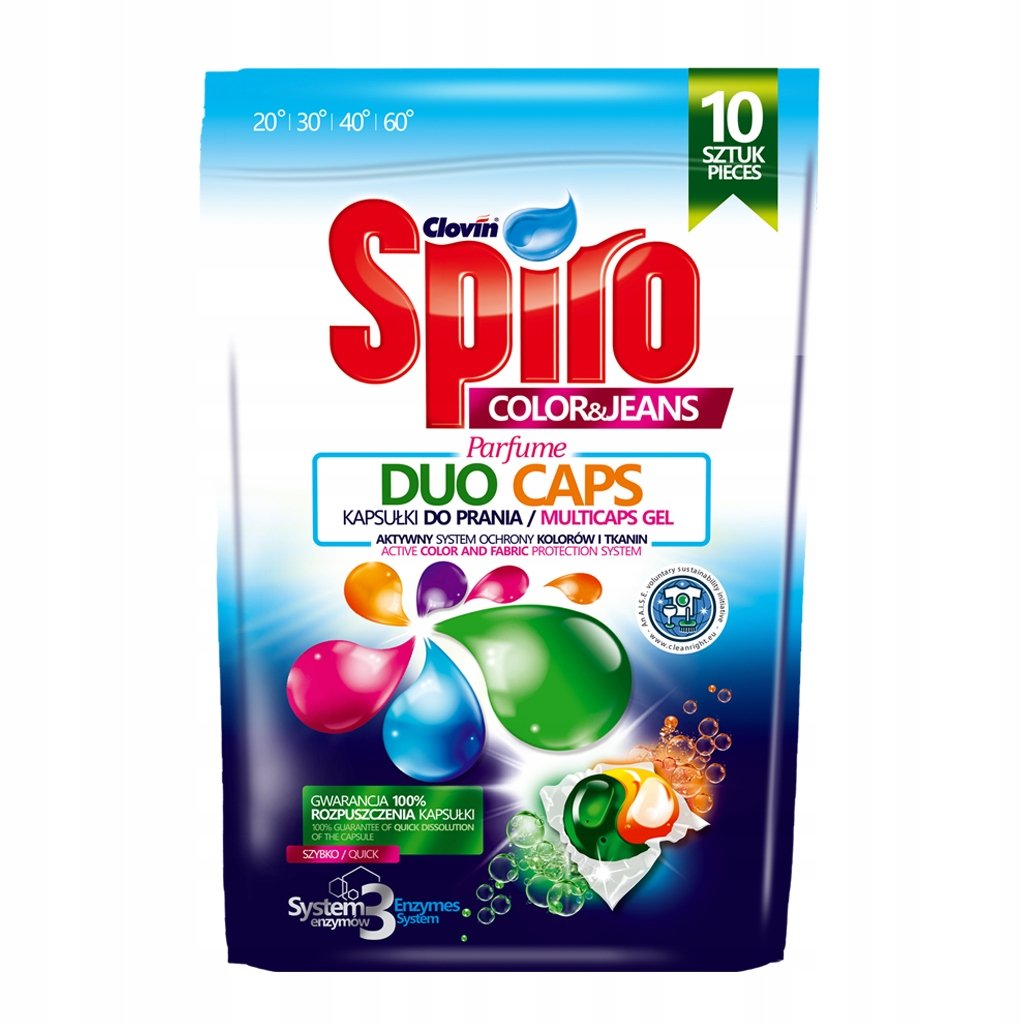 Pracie kapsulky Spiro Color boli vyrobené s ohľadom na ochranu životného prostredia. Okrem toho sa zloženie koncentrovaného gélu dokonale rozpúšťa, čím sa minimalizuje riziko zotrvania na tkaninách a podráždenie pokožky.