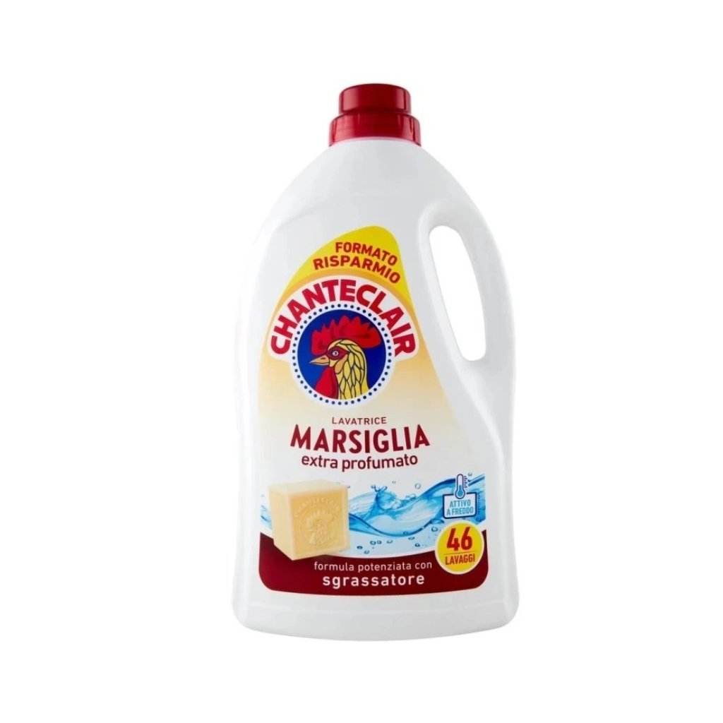 Prací prostriedok Chanteclair Marsiglia vďaka svojmu špeciálnemu koncentrovanému zloženiu a o 30% vyššej účinnosti v každej kvapke* odstraňuje aj tie najodolnejšie škvrny. Obohatený o skutočný odmasťovač zaisťuje čistú bielizeň od nízkych teplôt. *laboratórne testy, priemerná účinnosť na škvrny od kečupu, čaj, červená repa, olivový olej, škrob, čokoládová zmrzlina, čokoládový puding, vajce, krv v porovnaní s predchádzajúcim dávkovaním 61ml.
