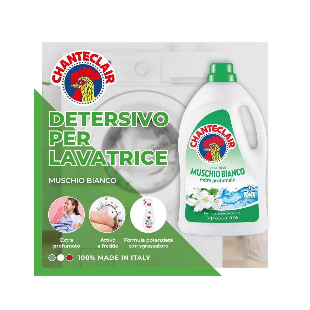 Taliansky gél Chante Clair zaručuje vďaka technológii "Super Enzymy" čistotu aj pri nízkych teplotách. Perie dôkladne do hĺbky vlákien. Zároveň chráni farby a ich stálosť. Vhodný na pranie detského prádla aj oblečenia pre Ľudí s veľmi citlivou pokožkou.