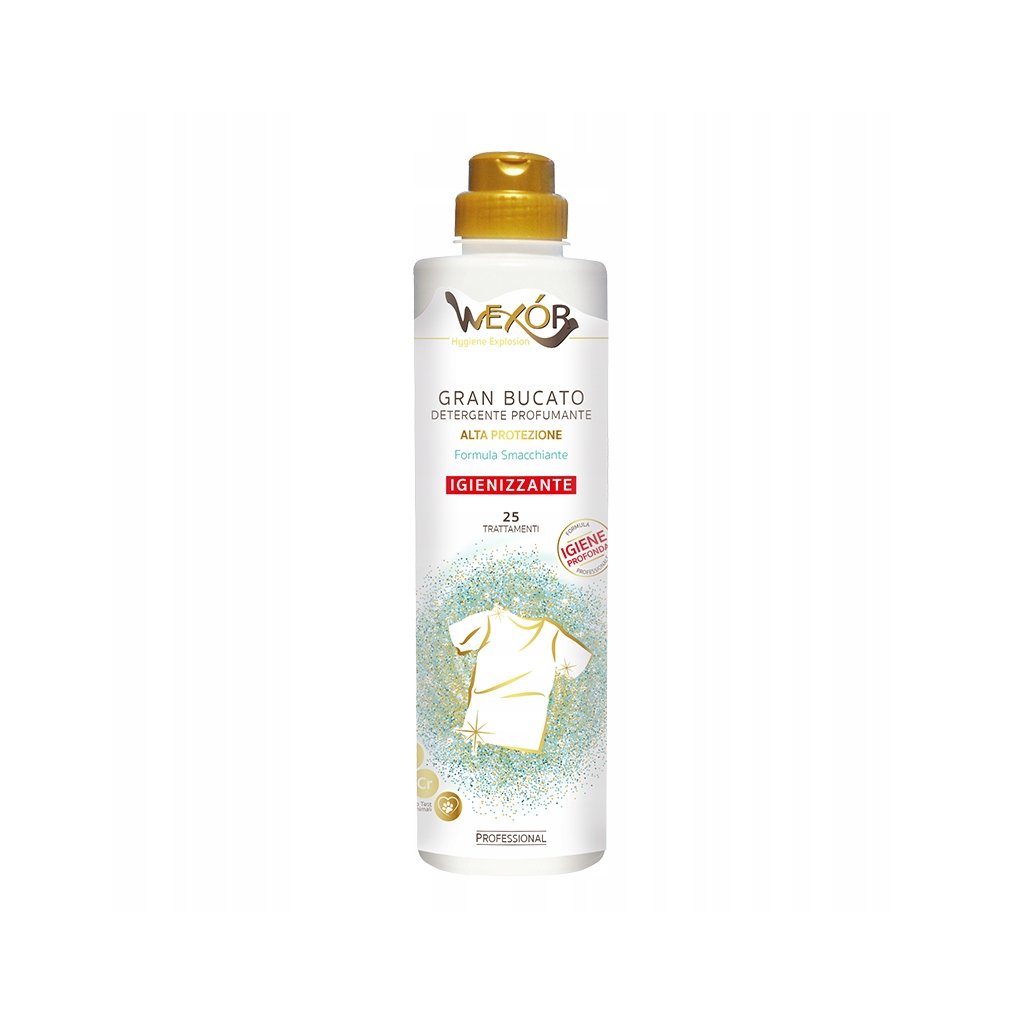 Wexor dezinfekčný prací prostriedok na bielu i farebnú bielizeň, ktorý eliminuje nepríjemné pachy a dodáva oblečeniu bezkonkurenčnú čistotu. Obsahuje špeciálne enzýmy oživujúce farby. Šetrné zloženie má vyhladzujúci účinok na vlákna a neobsahuje fosfáty, kremičitany a zásady.