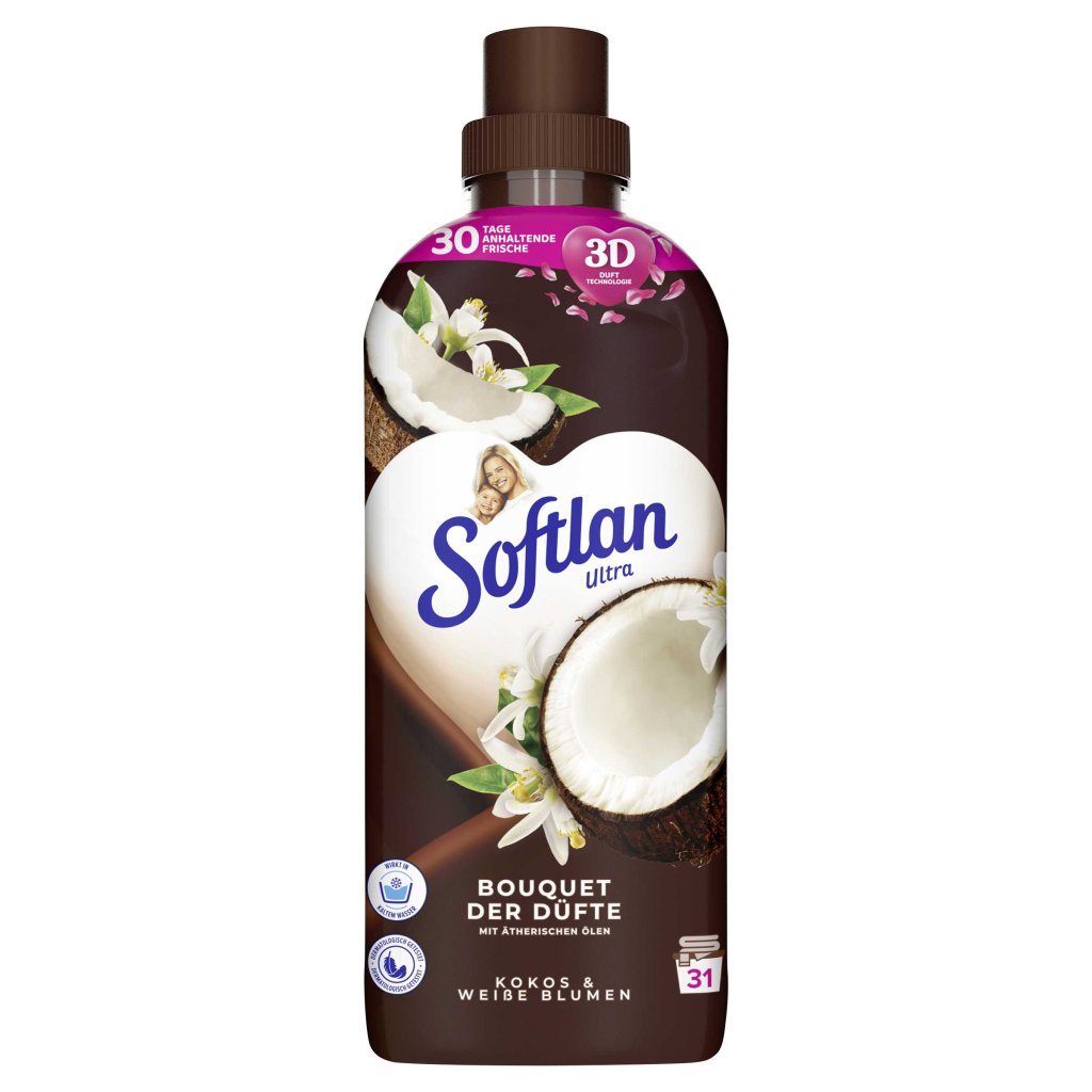 Produkt predávaný prevažne na Nemeckom trhu. Softlan Ultra kokos a biely kvet koncentrovaná aviváž udrží vaše prádlo dlho svieže a plné vône. Obsahuje látky šetrné k tkaninám, dodáva prádlu mäkkosť a dlhotrvajúcu sviežosť a uľahčuje žehlenie. Vďaka dermatologicky testovanému zloženiu aviváže s účinnými látkami na rastlinnej báze je bielizeň nádherne jemná a nádherne vonia. Fľaša je navyše vyrobená zo 100% recyklovaného plastu a fľaša aj viečko sú 100% recyklovateľné.