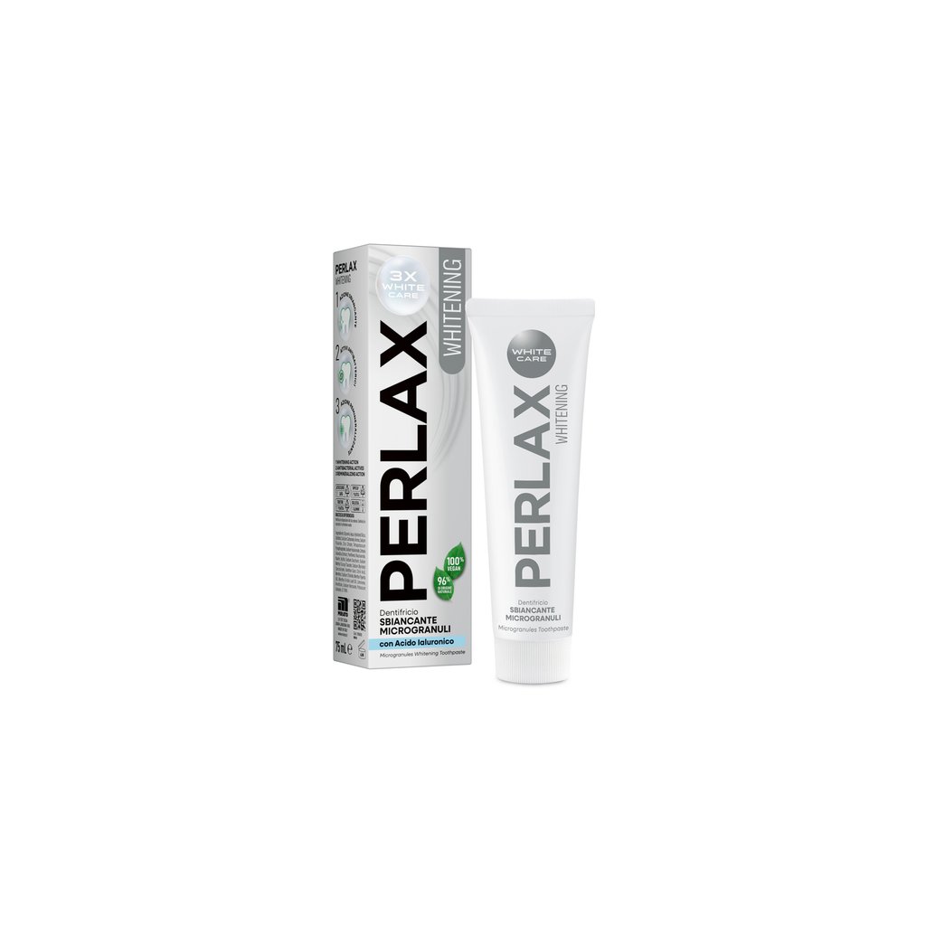 Perlax Whitening zubná pasta s kyselinou hyalurónovou je bieliaca pasta, ktorá spája účinný čistiaci účinok s jemnou starostlivosťou o ústnu dutinu.